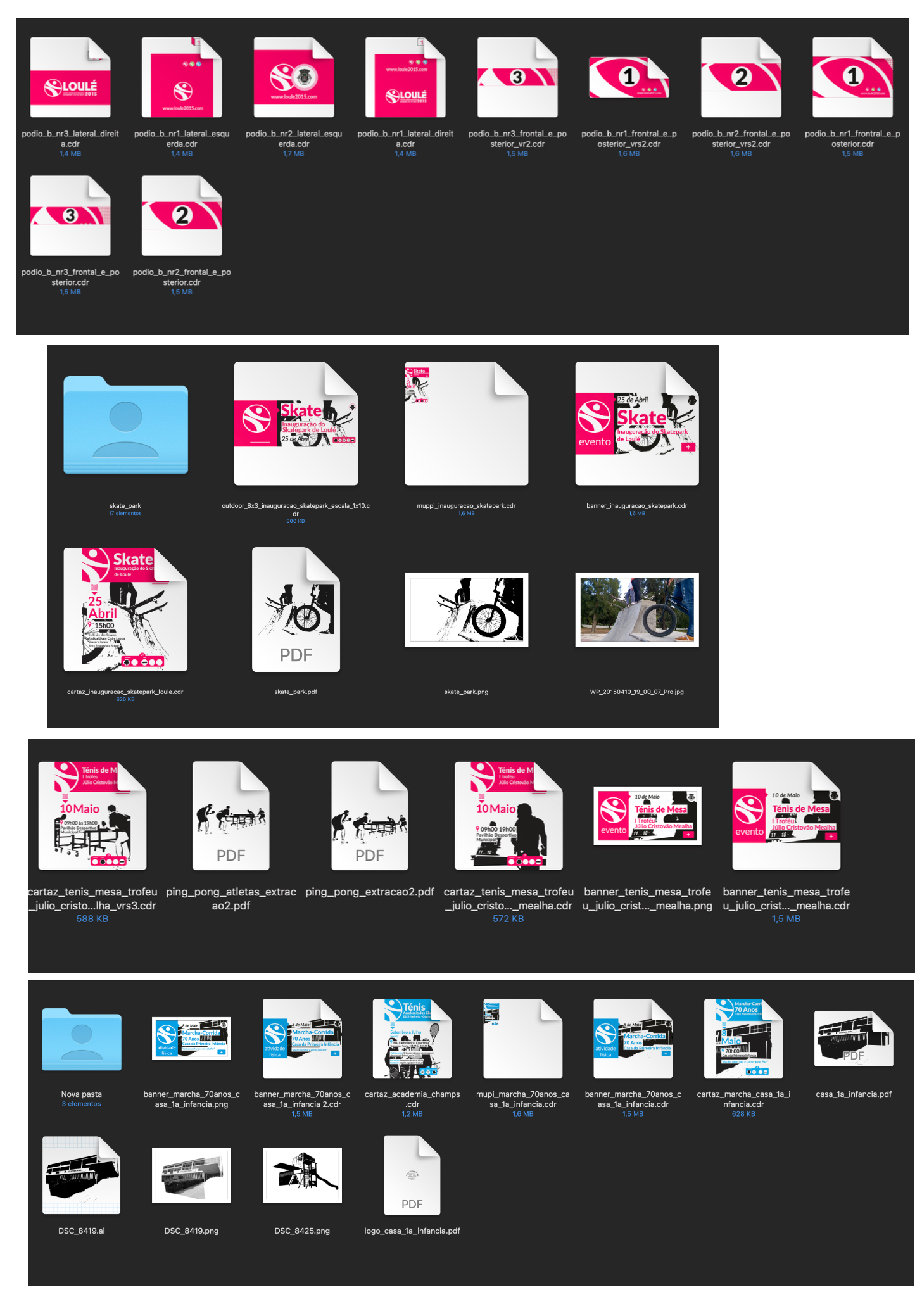 Todos estes formatos são um pequeno exemplo de um grande numero de trabalhos realizados para a comunicação e publicidade do evento, e servem para exemplificar a diversidade de necessidades a desenvolver durante a realização de uma C.E.D.